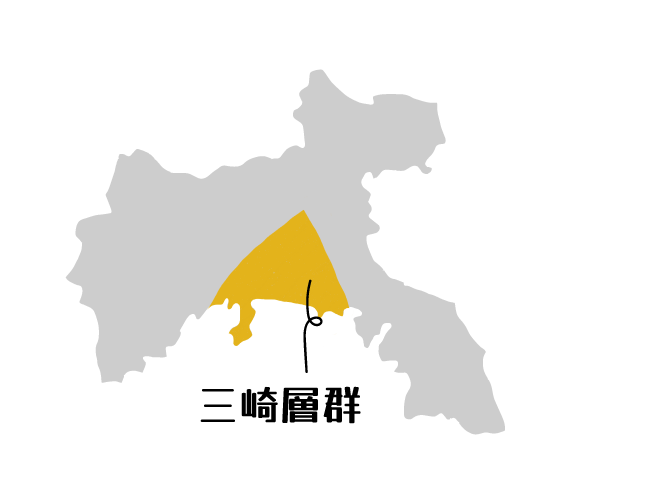 三崎層群 は、およそ1700万年前の前孤海盆 でたまった砂 やどろでつくられたと考えられています。